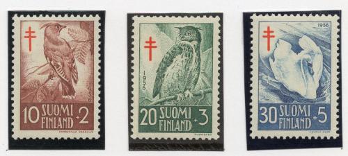 Почтовые марки. Финляндия, 1956 г. Фауна. Птицы. Борьба с туберкулезом. Mi.No. 461 - 463