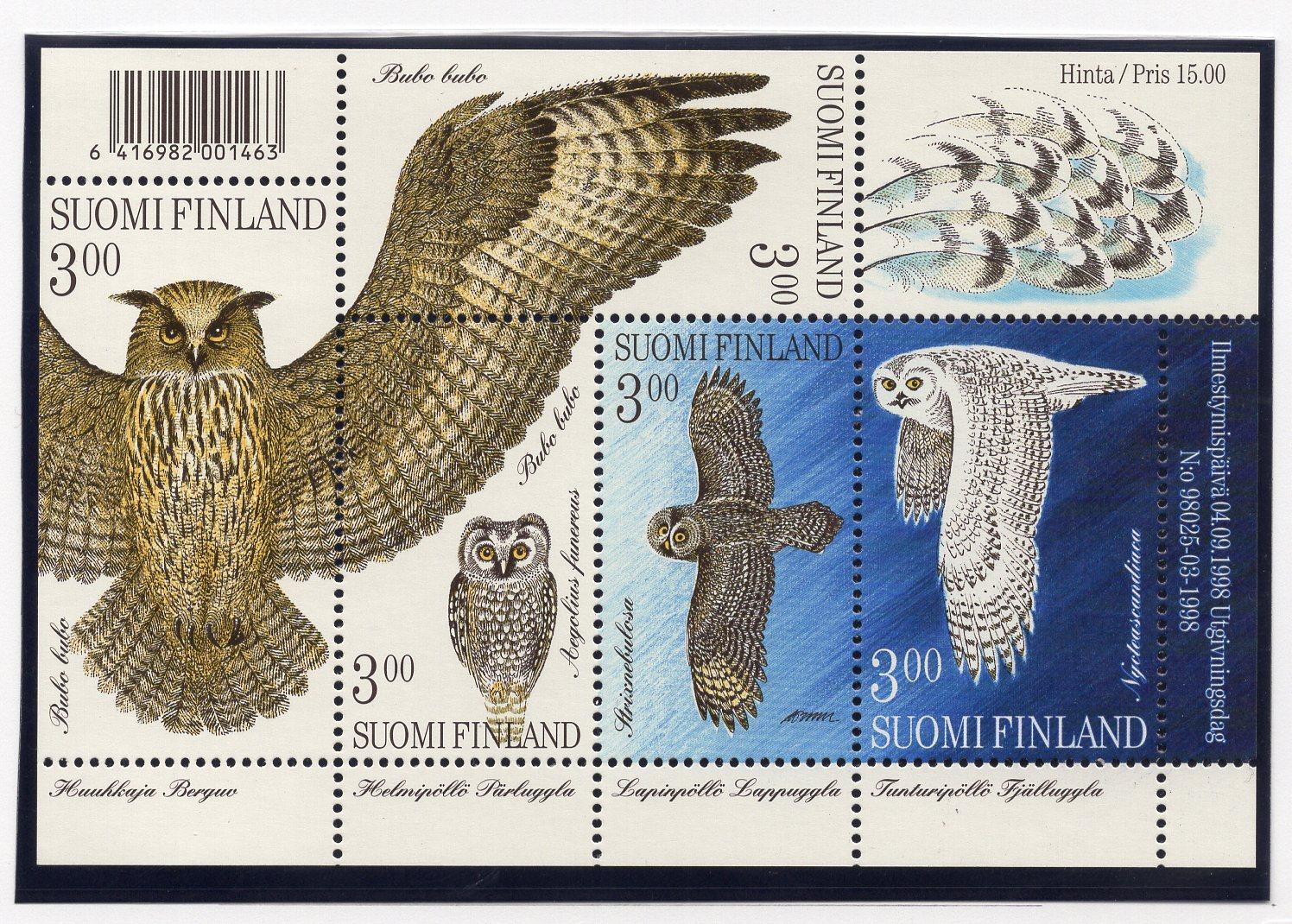 Почтовые марки. Финляндия, 1998 г. Фауна. Совы. Блок 19.
