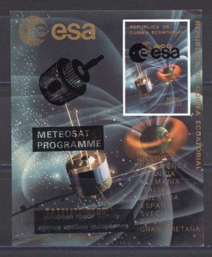 Почтовые марки. Экваториальная Гвинея. 1977г. Космос. Надпечатка METEOSAT. Тираж 1000 экз. Блок №277в. Беззубц.