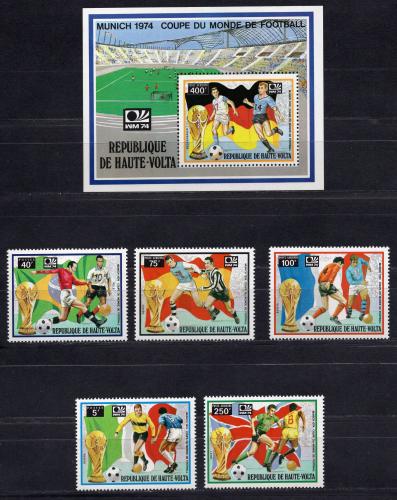 Почтовые марки. Верхняя Вольта, 1974 г. Футбол. Mi.No. 498 - 502, Бл. 22.
