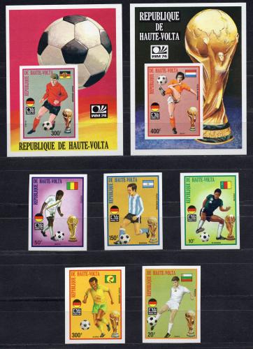 Почтовые марки. Дагомея, 1974 г. Mi.No. 509 - 513, Бл.24-25. Футбол. Безз.