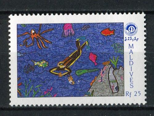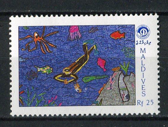 Почтовые марки. Мальдивы, 1991 г. Ныряльщик. Детские рис. (гл. марка) №1538