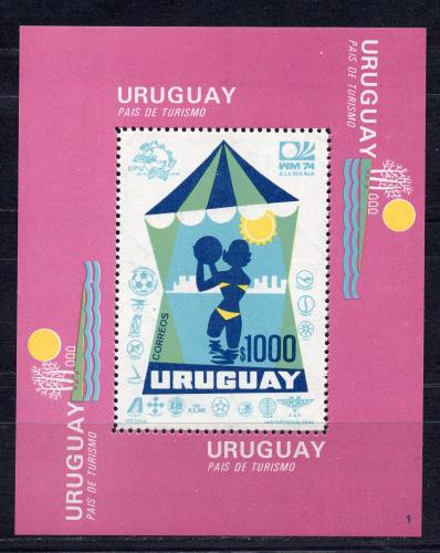 Почтовые марки. Уругвай, 1974 г. Бл. 20. Туризм. ВПС. (Mi 40.0 e)