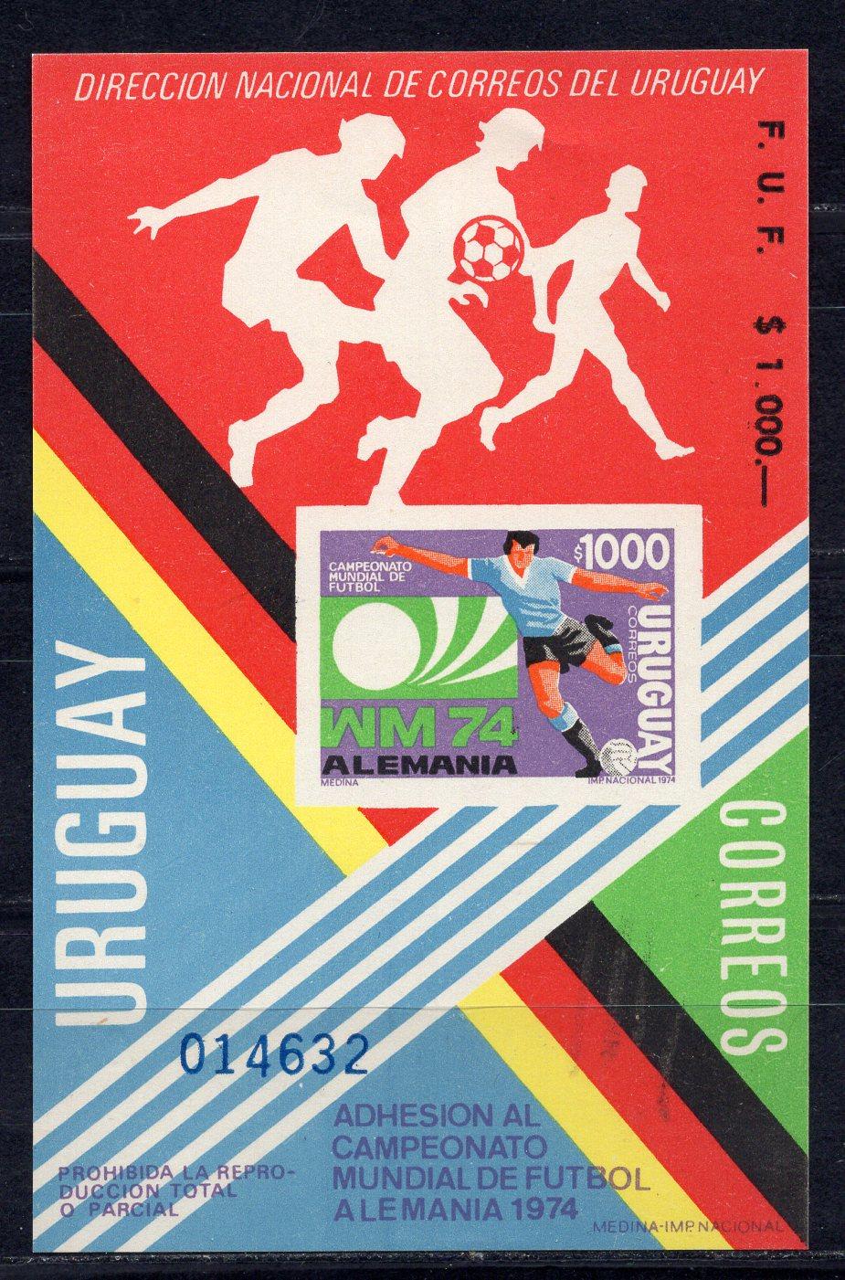 Почтовые марки. Уругвай, 1974 г. №1304. Футбол. Спецвыпуск. Безз.