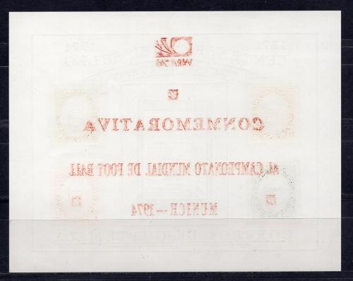 Почтовые марки. Гватемала, 1974 г. Футбол. Бл. 15b. Безз. Надпечатка. Mi 32,00 €
