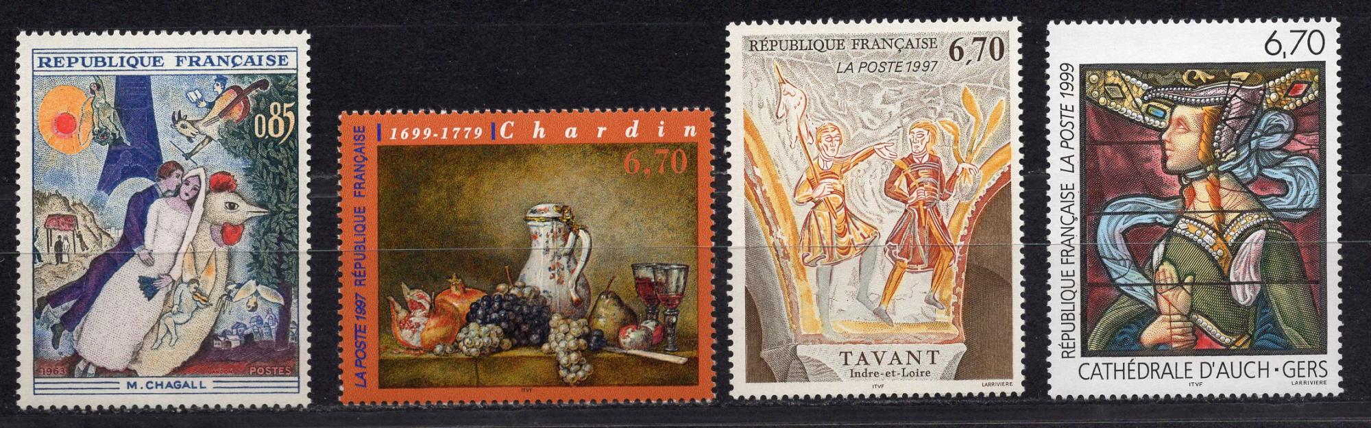 Почтовые марки. Франция, 1963-1999. №1452, 3248, 3192, 3396.