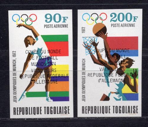 Почтовые марки. Того, 1974 г. №1066-1067 B. Ол. Игры. Футбол. Надпечатка. Безз.