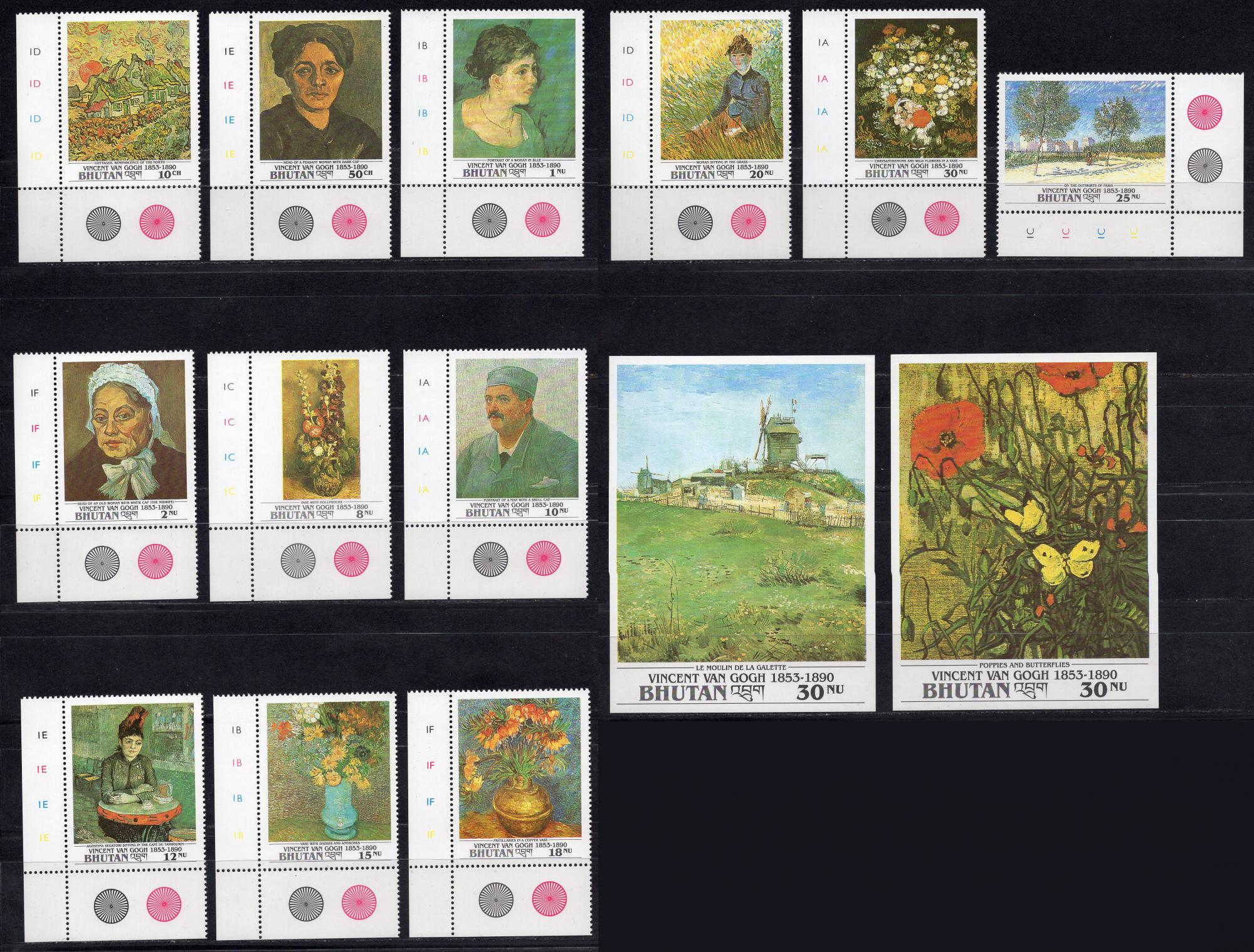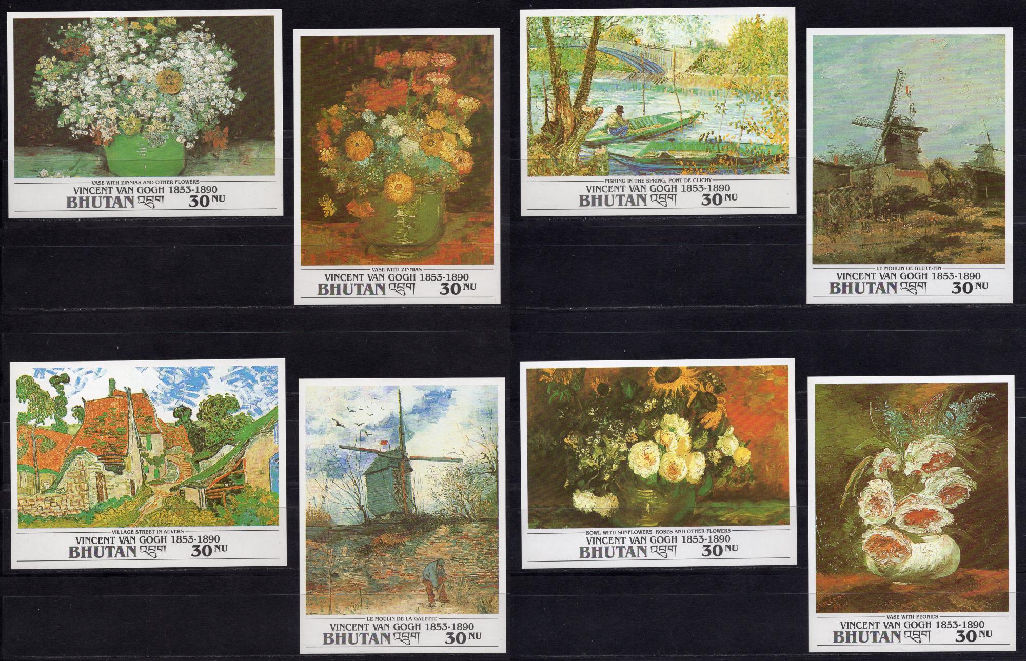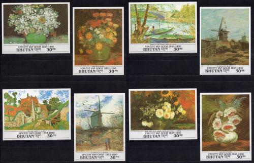Почтовые марки. Бутан, 1991 г. 100 лет со дня смерти Винсента ван Гога. Живопись. MiNr. 1432 - 1443, Бл. 324-335. (Mi 102.00 €)