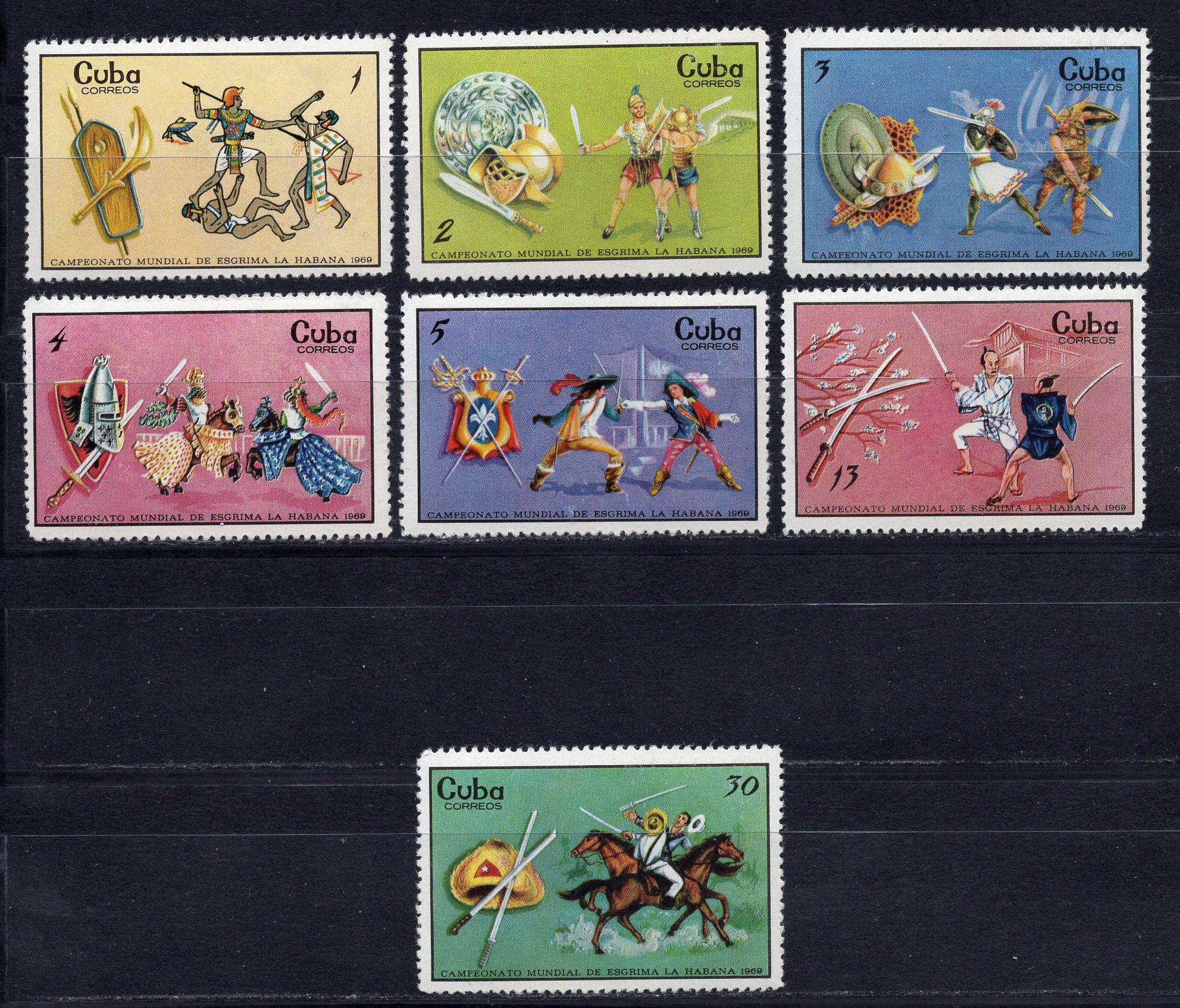 Почтовые марки. Куба, 1969 г. Чемпионат мира по фехтованию, Гавана. MiNr. 1508 - 1515.