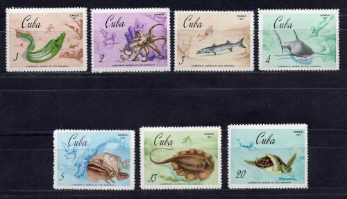Почтовые марки. Куба, 1967 г. Рыбы. MiNr. 1344 - 1350.