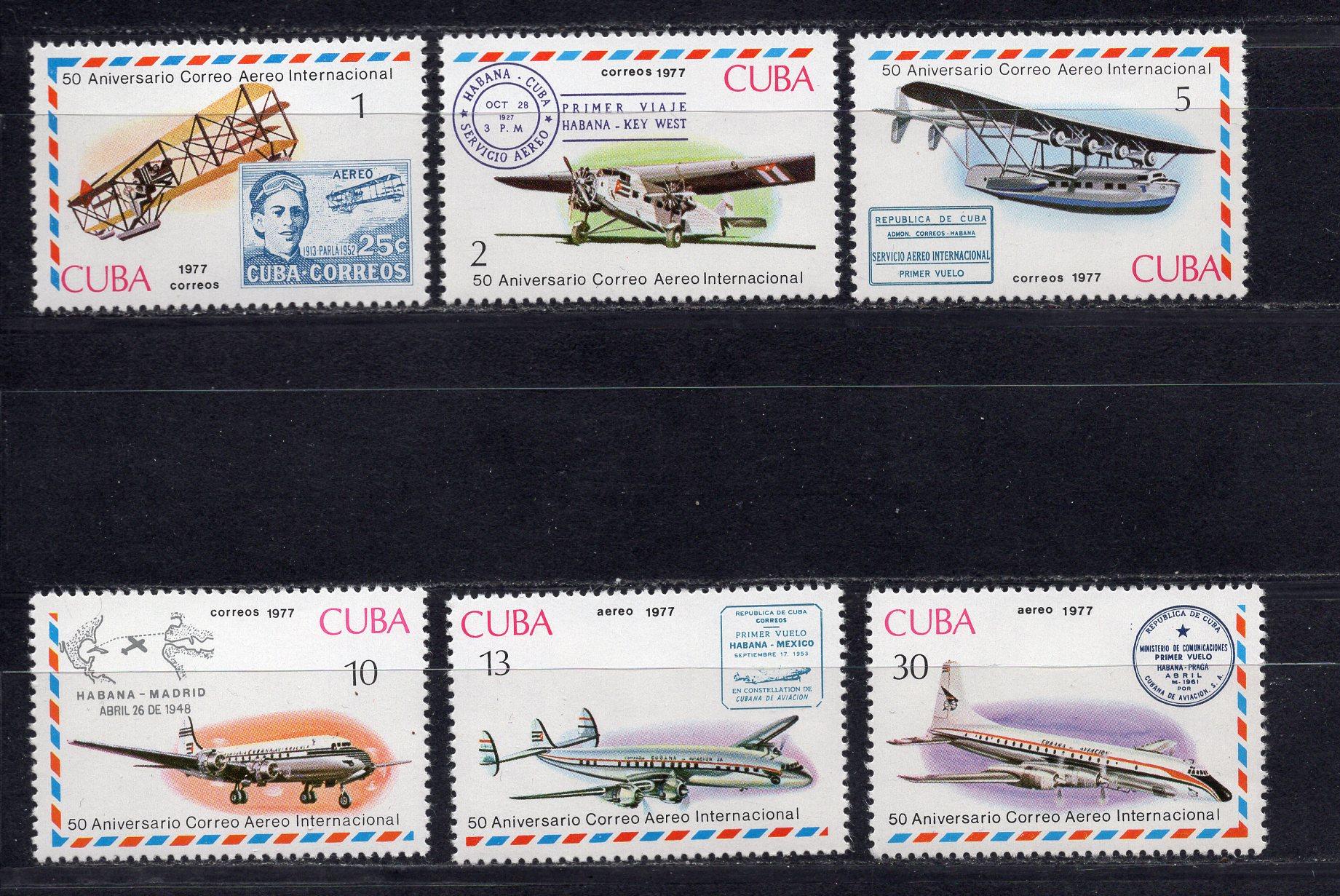 Почтовые марки. Куба, 1977 г. MiNr. 2248 - 2253. Самолеты.
