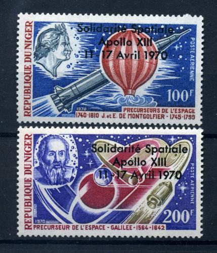 Почтовые марки. Нигер. 1970 г. № 255-256. Космос. Надпечатка.