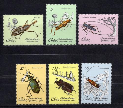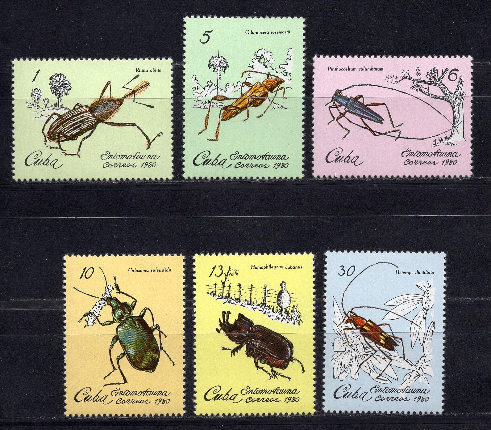 Почтовые марки. Куба, 1980 г. Насекомые. MiNr. 2448 - 2453.
