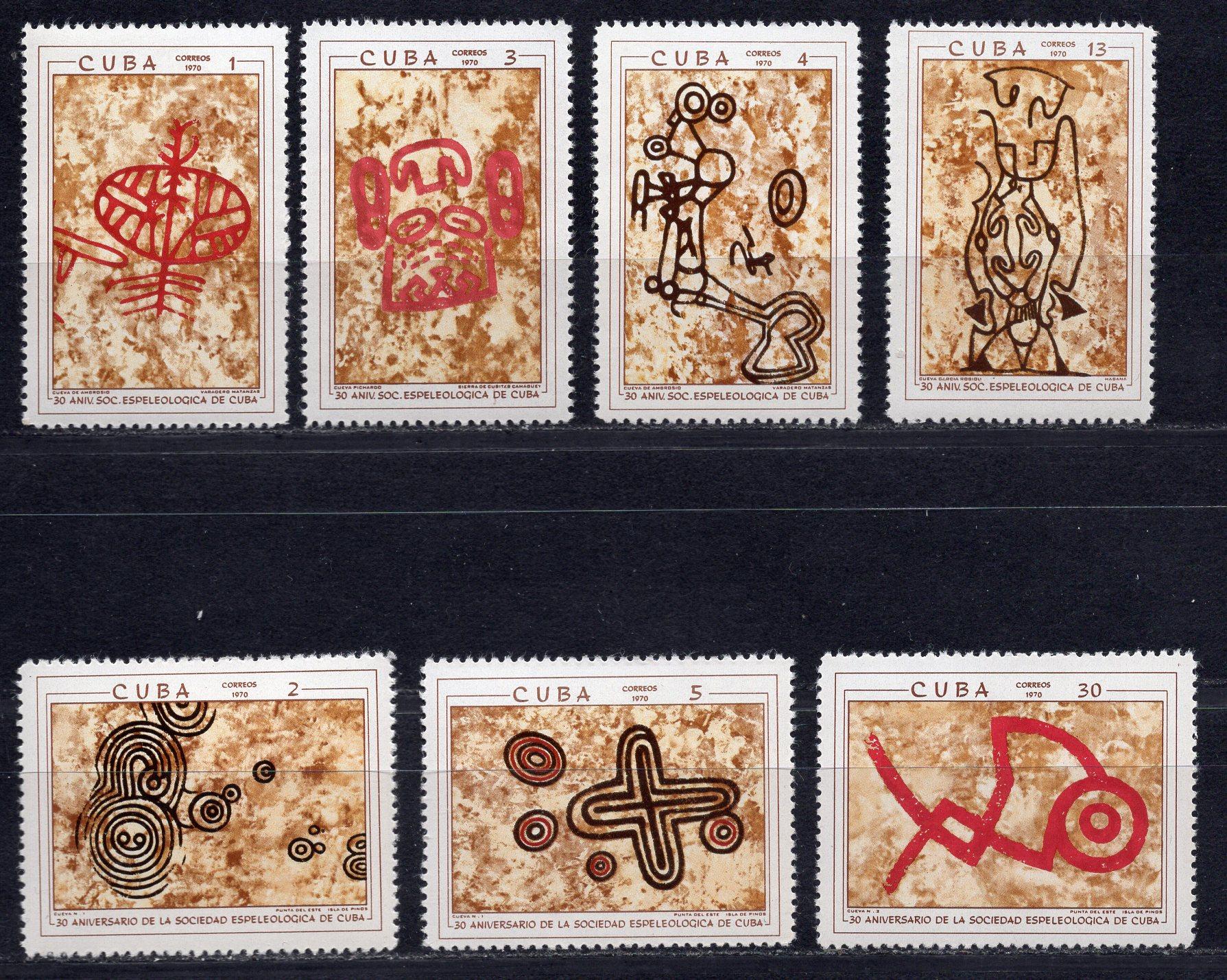 Почтовые марки. Куба, 1970 г. 30 лет Обществу спелеологов. Пещерные рисунки. MiNr. 1579 - 1585.