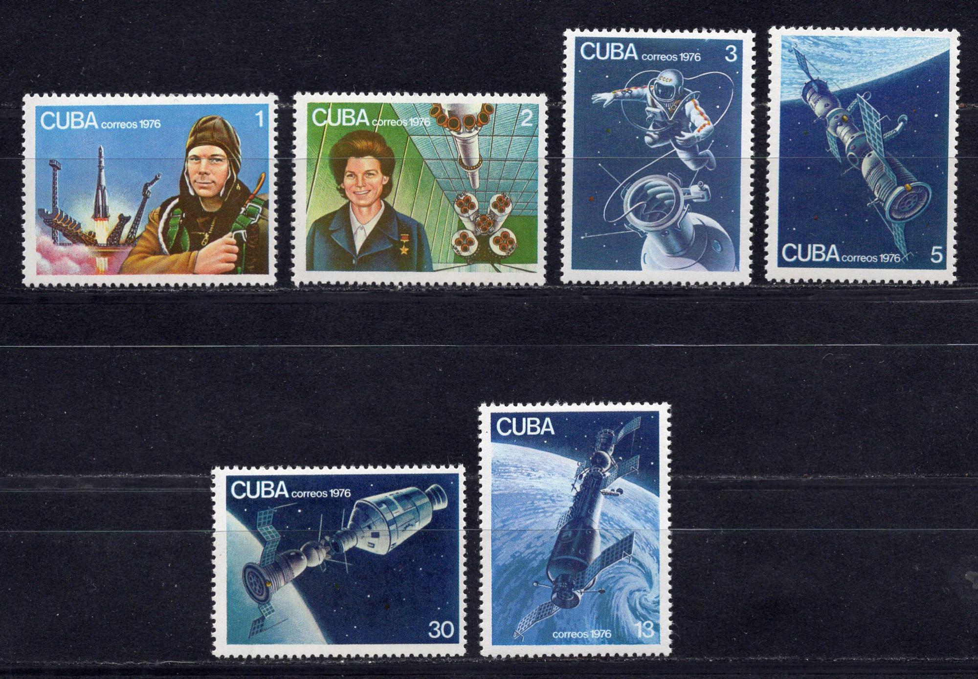 Почтовые марки. Куба, 1976 г. MiNr. 2125 - 2130. 15 лет пилотируемой космонавтики. Гагарин. Терешкова.