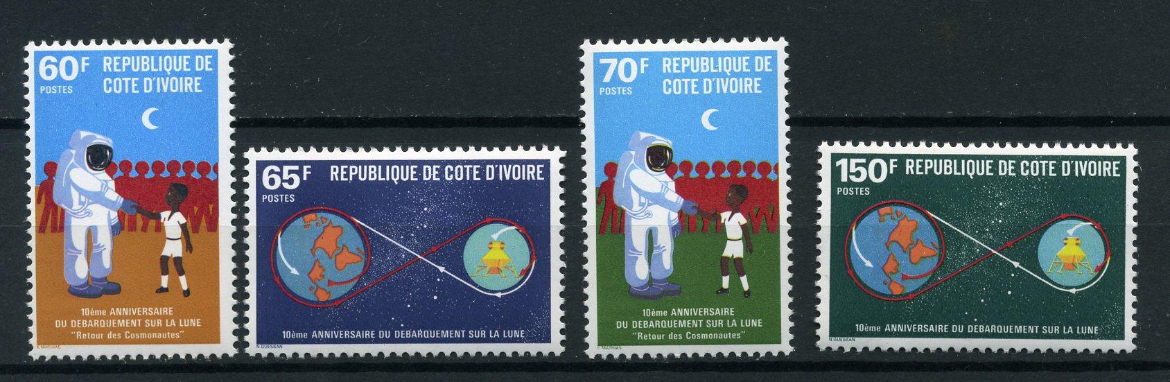 Почтовые марки. Кот д'Ивуар. 1979г. Космос. Аполло-11. №602-605.