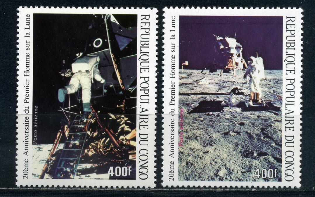 Почтовые марки. Конго. 1989г. Космос. Человек на Луне. №1150-1151 (Mi: 8.80 Евро)
