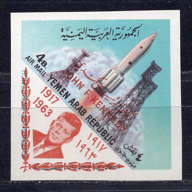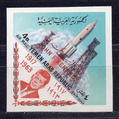 Почтовые марки. Йемен 1965 г Космос Кеннеди Надпечатка № 407