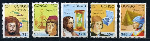 Почтовые марки. Конго. 1992г. Изобретатели и мореплаватели. №1314-1318.