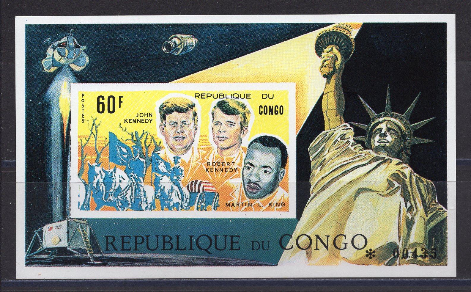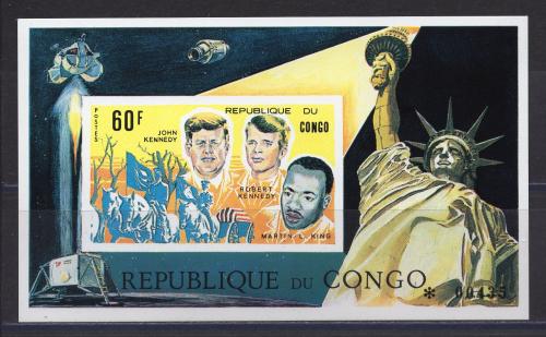 Почтовые марки. Конго. 1970г. Кеннеди. Блок №6в. Беззубц.