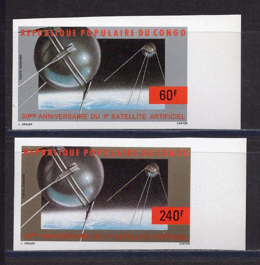 Почтовые марки. Конго. 1987г. Космос. Первый спутник. №1074в-1075в. Беззубц.