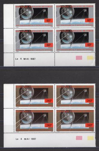 Почтовые марки. Конго. 1987г. Космос. Первый спутник. №1074-1075. КБ (Mi: 10.00 Евро)