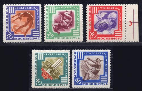 Почтовые марки. СССР. 1957 г. Игры молодёжи. № 2020-2024 (Кат.: 250р.)