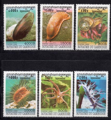 Почтовые марки. Камбоджа, 1999 г. №1944-49. Морская фауна.