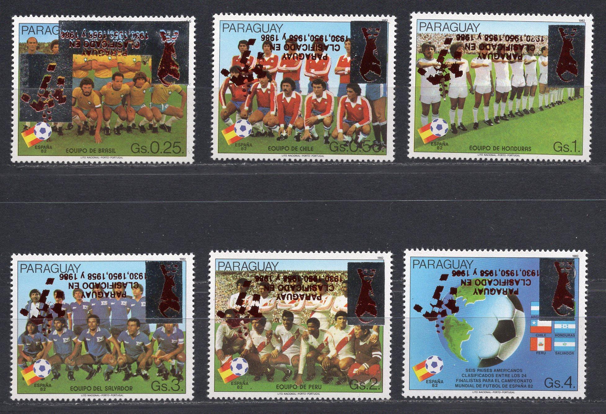 Почтовые марки. Парагвай, 1989 г. №4381-86. Футбол. Надпечатка. ПЕРЕВЁРТКА ! (Mi 15.0 e - обычн.)