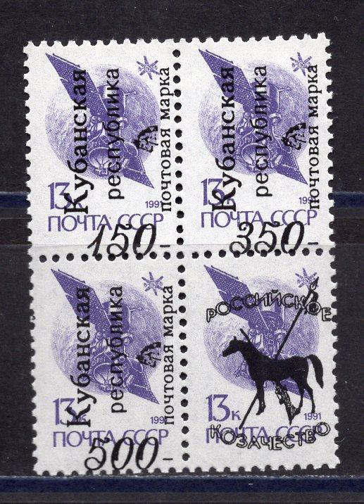 Почтовые марки. Россия. 1994г. Локальный выпуск. Кубанская республика. Надпечатка на марках СССР. КБ.