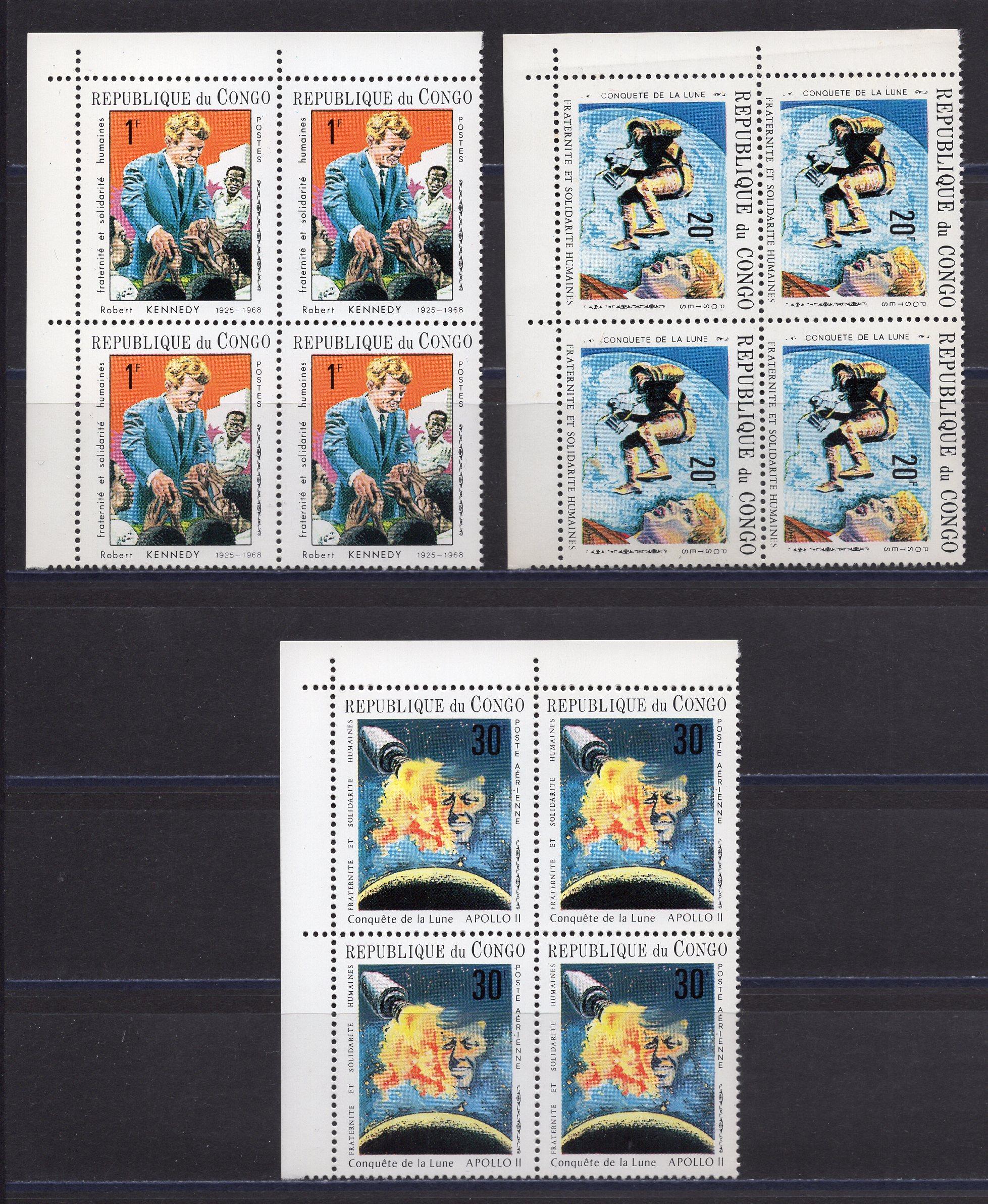 Почтовые марки. Конго. 1970г. Космос. Кеннеди. №212.214-215. КБ.