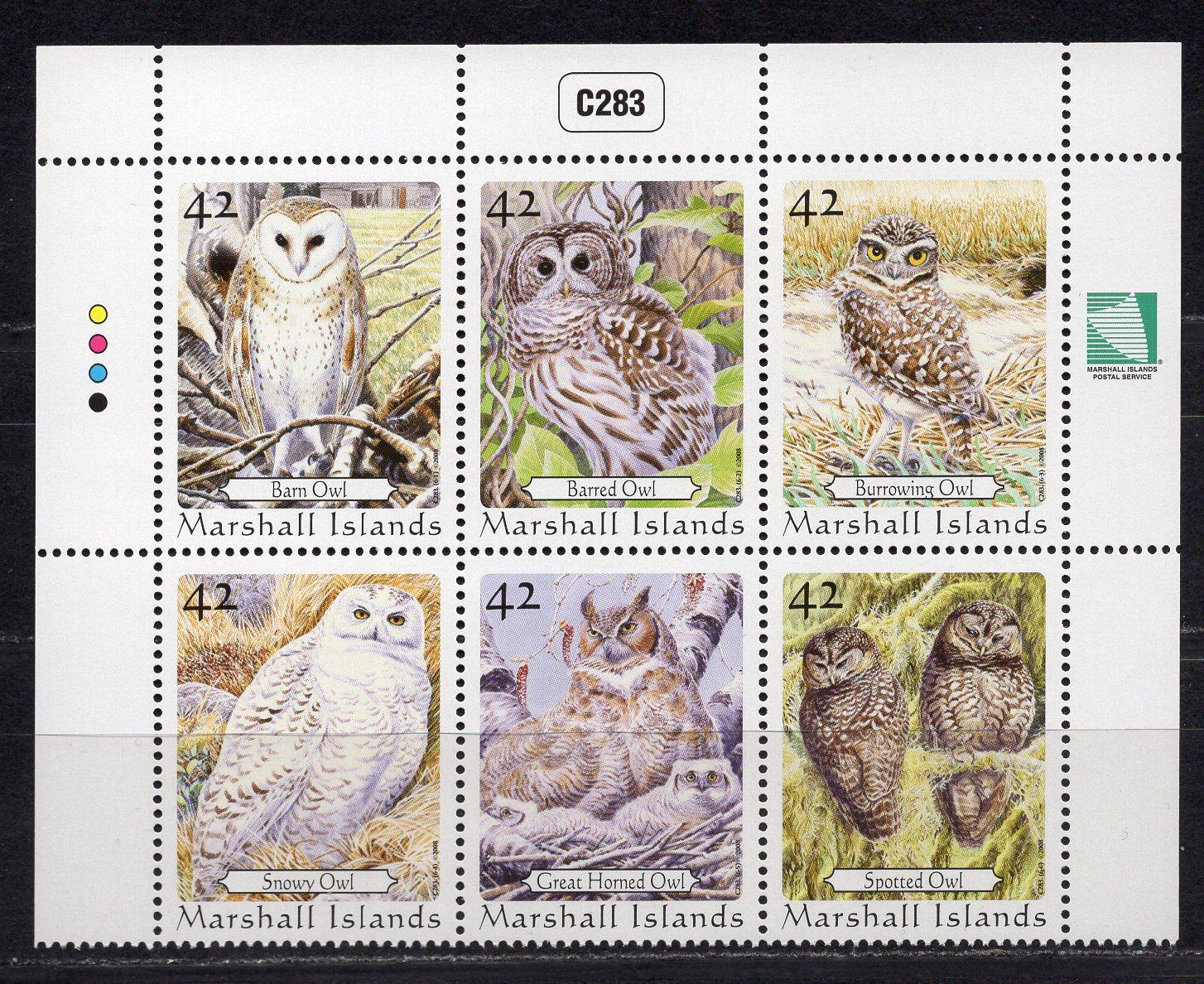 Почтовые марки. Маршалловы о-ва, 2008 г. MiNr. 2366 - 2371. Совы.