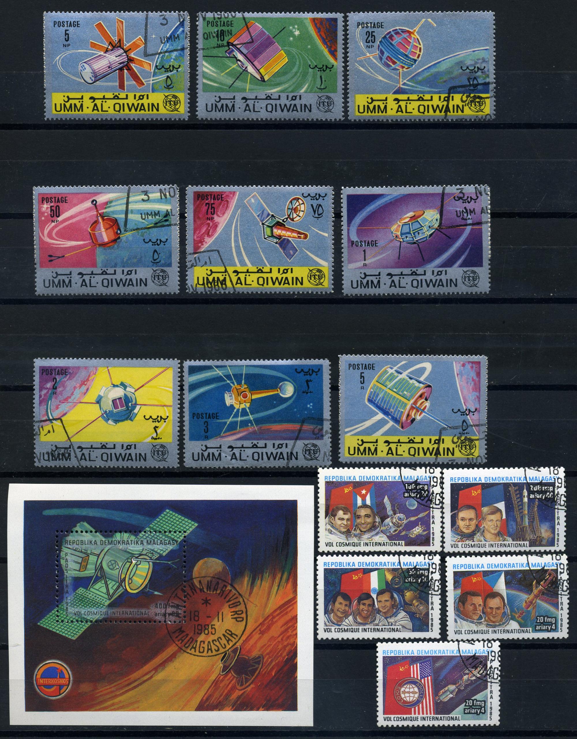 Почтовые марки. Мадагаскар 1985 г. № 1005-1009. Умм-Эль-Кайвайн 1966 г. № 78-86. Космос.