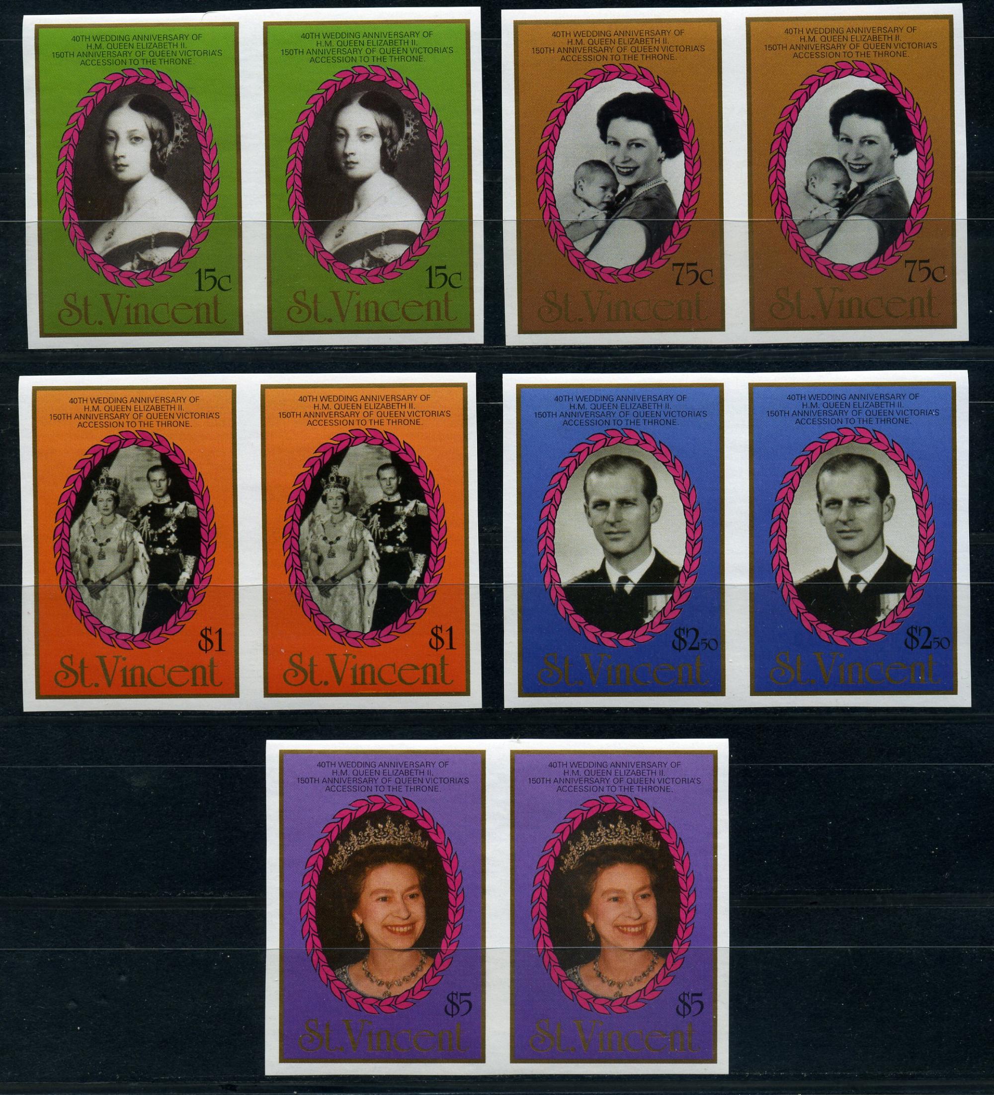 Почтовые марки. Сент-Винсент 1987г. Королева Виктория и Елизавета II. №1050в-1054в. Сцепки. Беззубц.