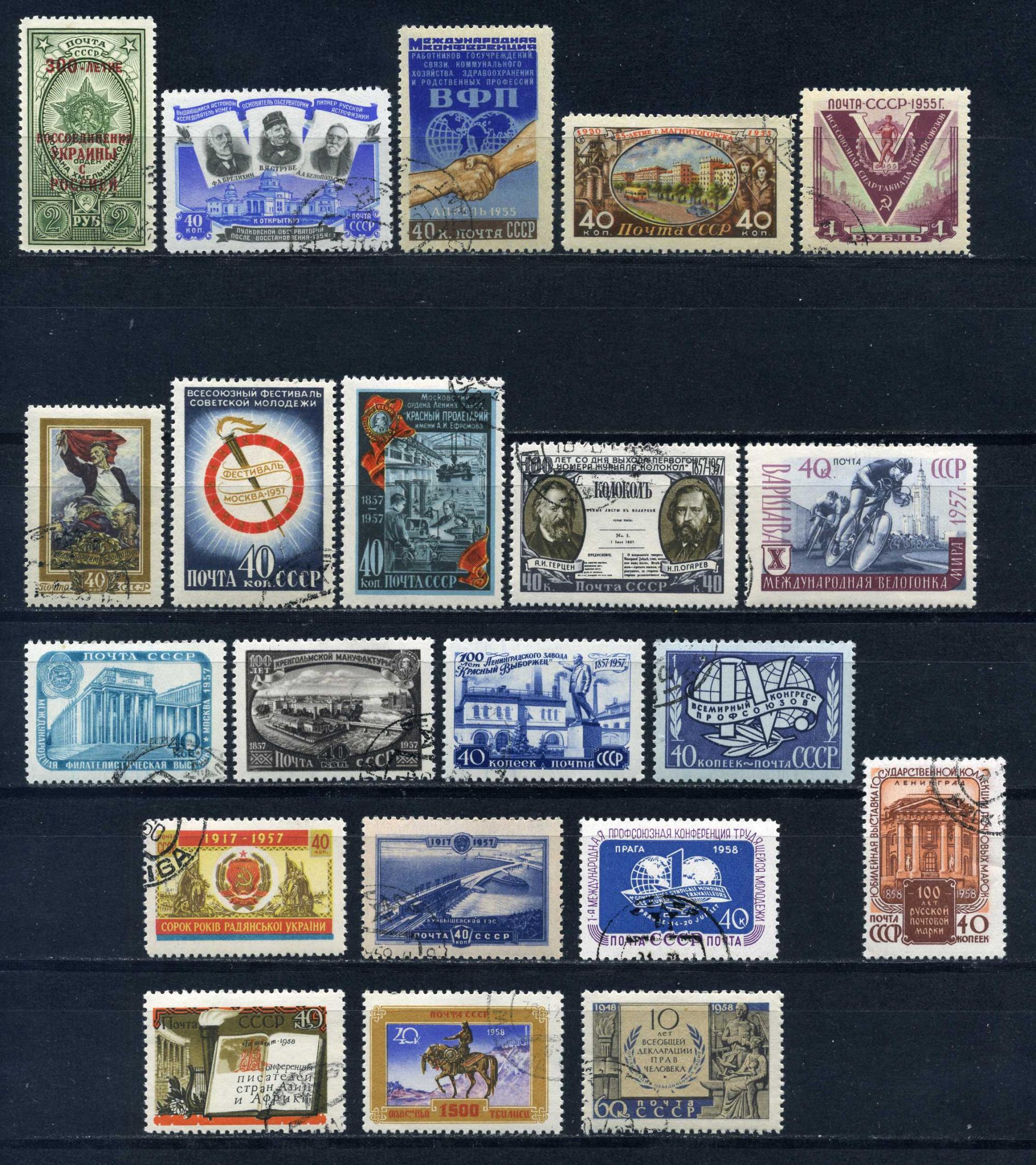 Почтовые марки СССР. 1954-1958гг. Знаменательные даты, годовщины. №№ 1754-2260. Сборный лот.