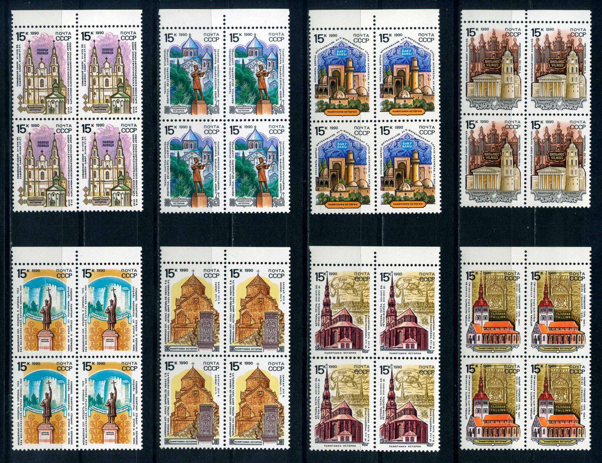 Почтовые марки. СССР. 1990г. Исторические памятники. №6229-6236. КБ