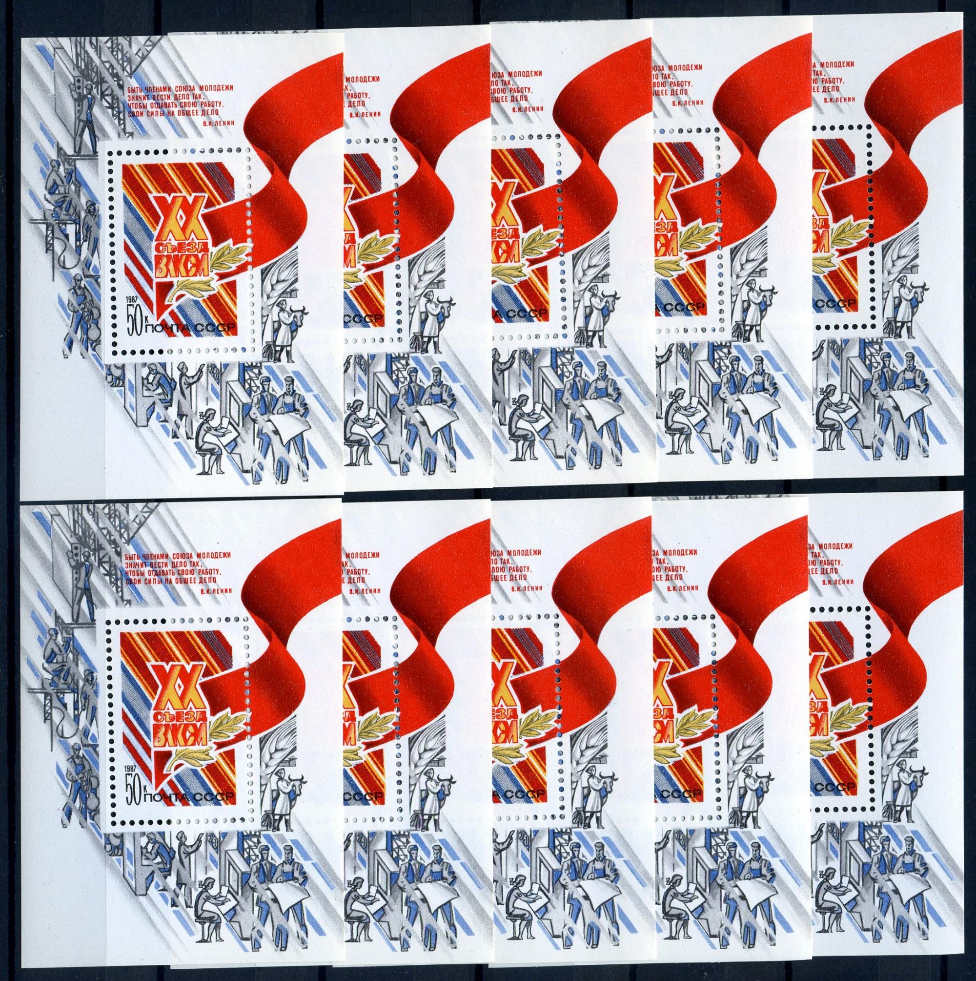 Почтовые марки. СССР 1987 г. ХХ съезд ВЛКСМ. № 5812. 10 блоков.
