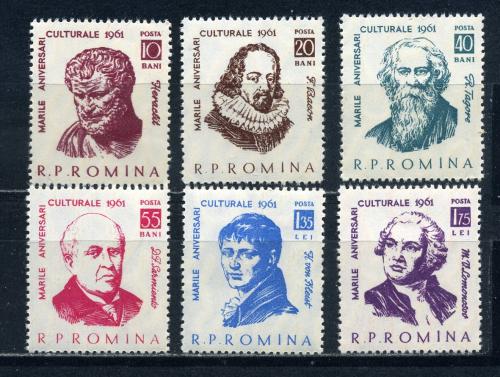 Почтовые марки. Румыния. 1961г. Деятели культуры. №2003-2008.