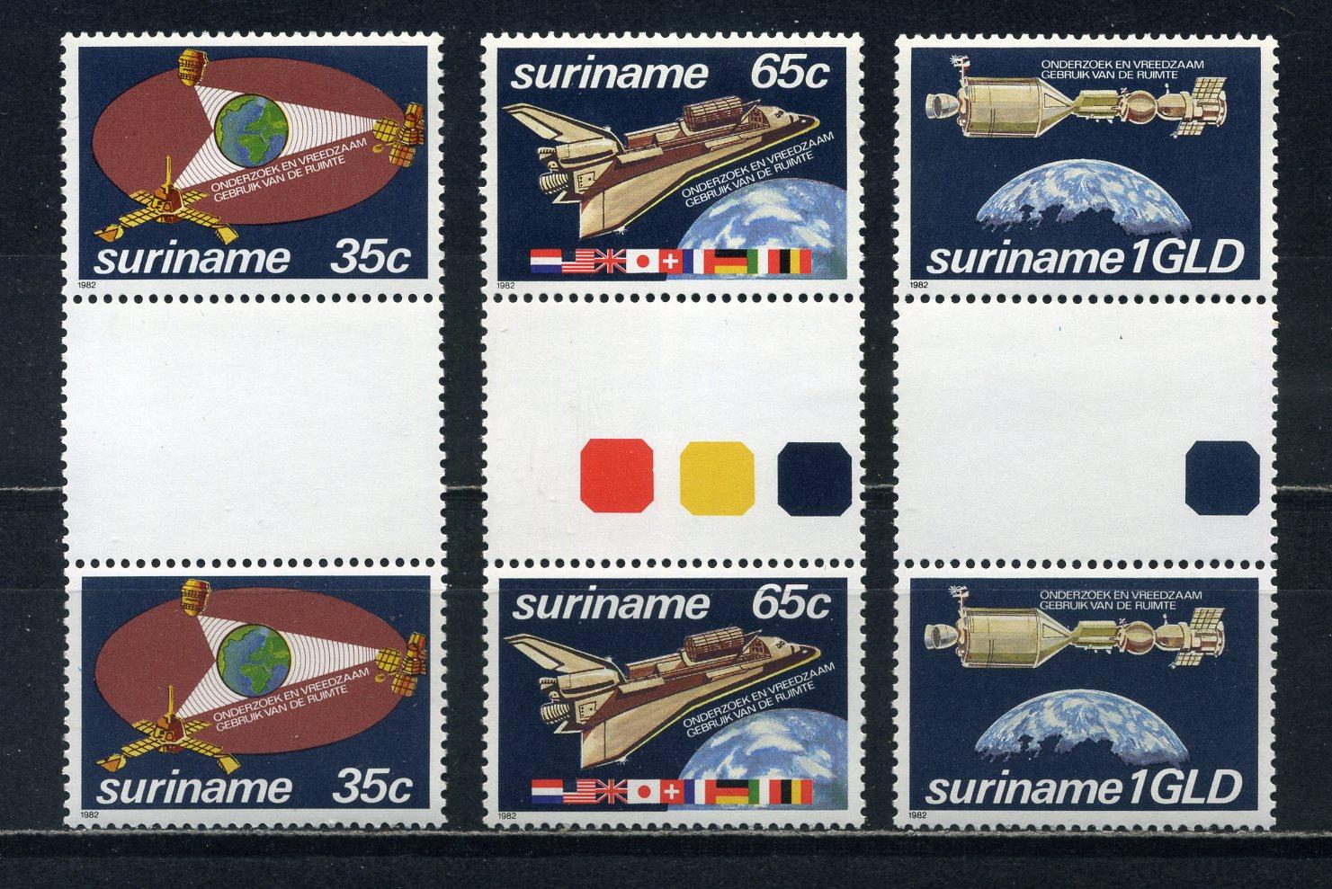 Почтовые марки. Суринам. 1982г. Космос. №967-969. Гаттер-пары.