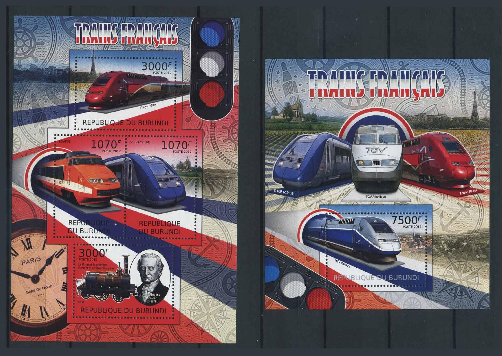 Почтовые марки. Бурунди. 2012 г. № 2441-2444, В1 221. Локомотивы Франции.