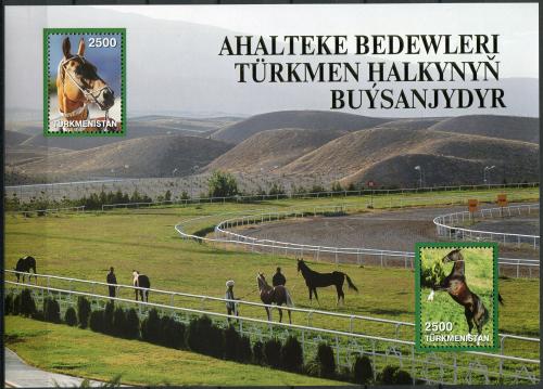 Почтовые марки. Туркменистан. 2005г. Лошади. Ахалтекинцы. Блок №25.