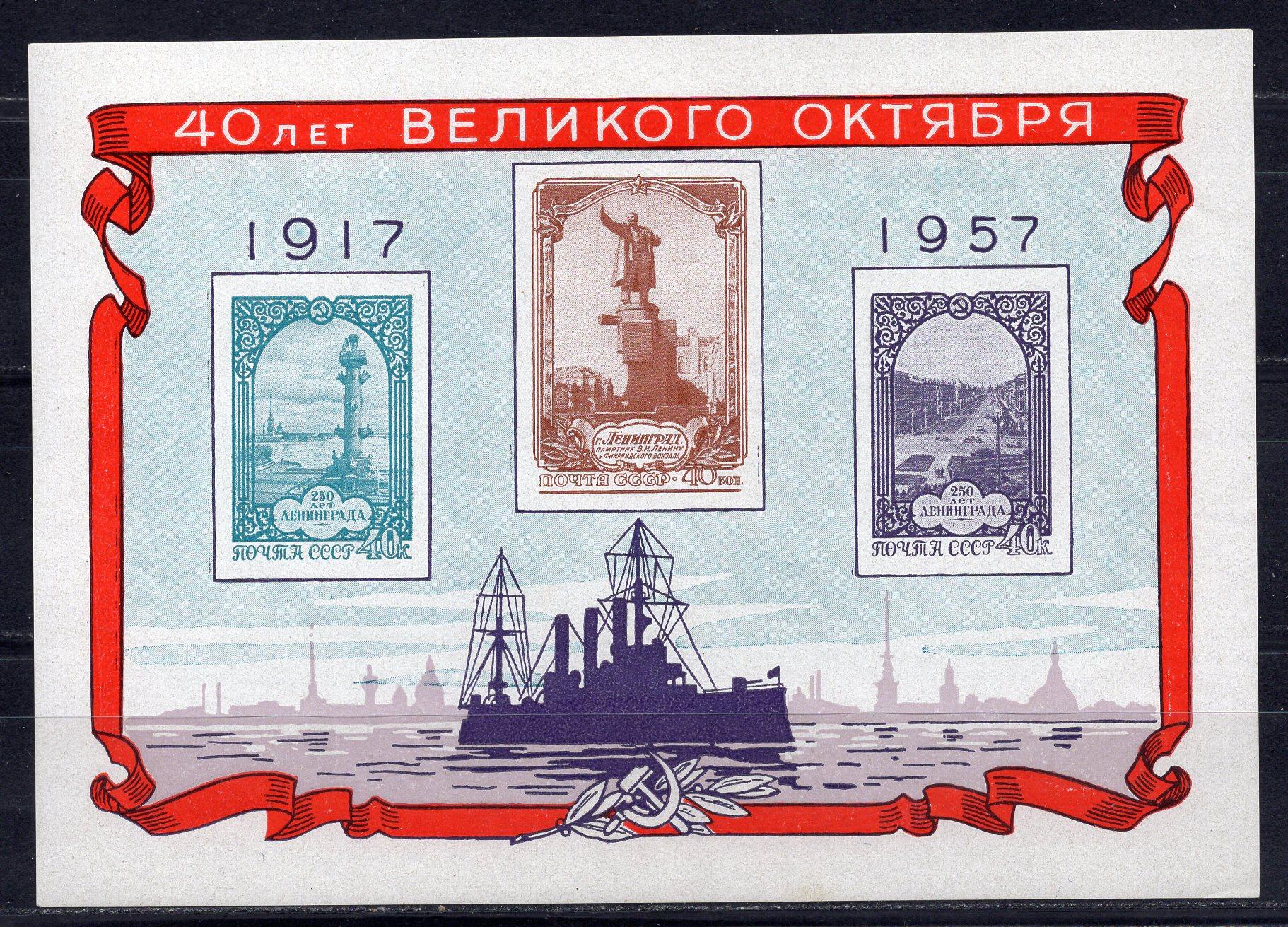 Почтовые марки. СССР, 1957 г. Бл. 2075. Октябрь.