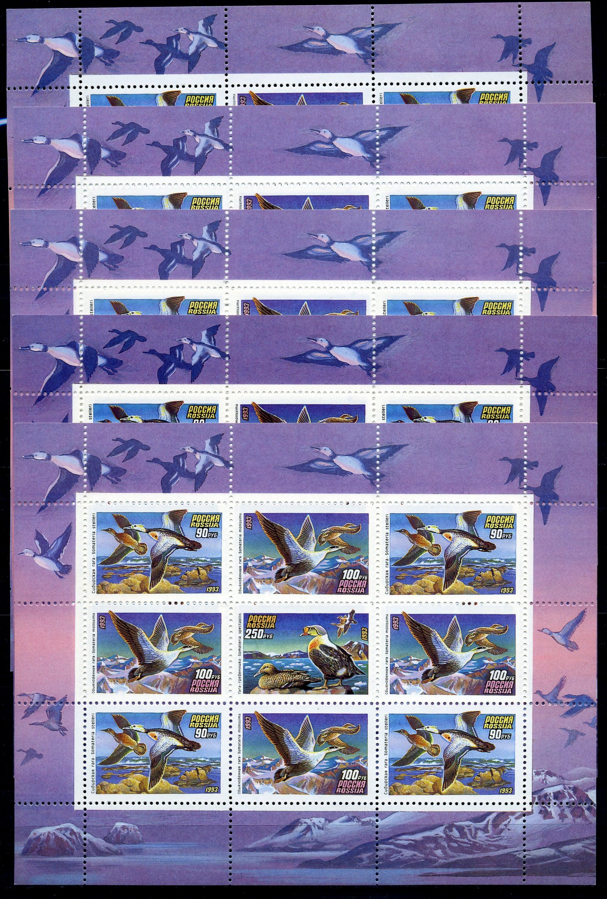 Почтовые марки. Россия 1993 г. Утки. № 101-103. 5 листов.