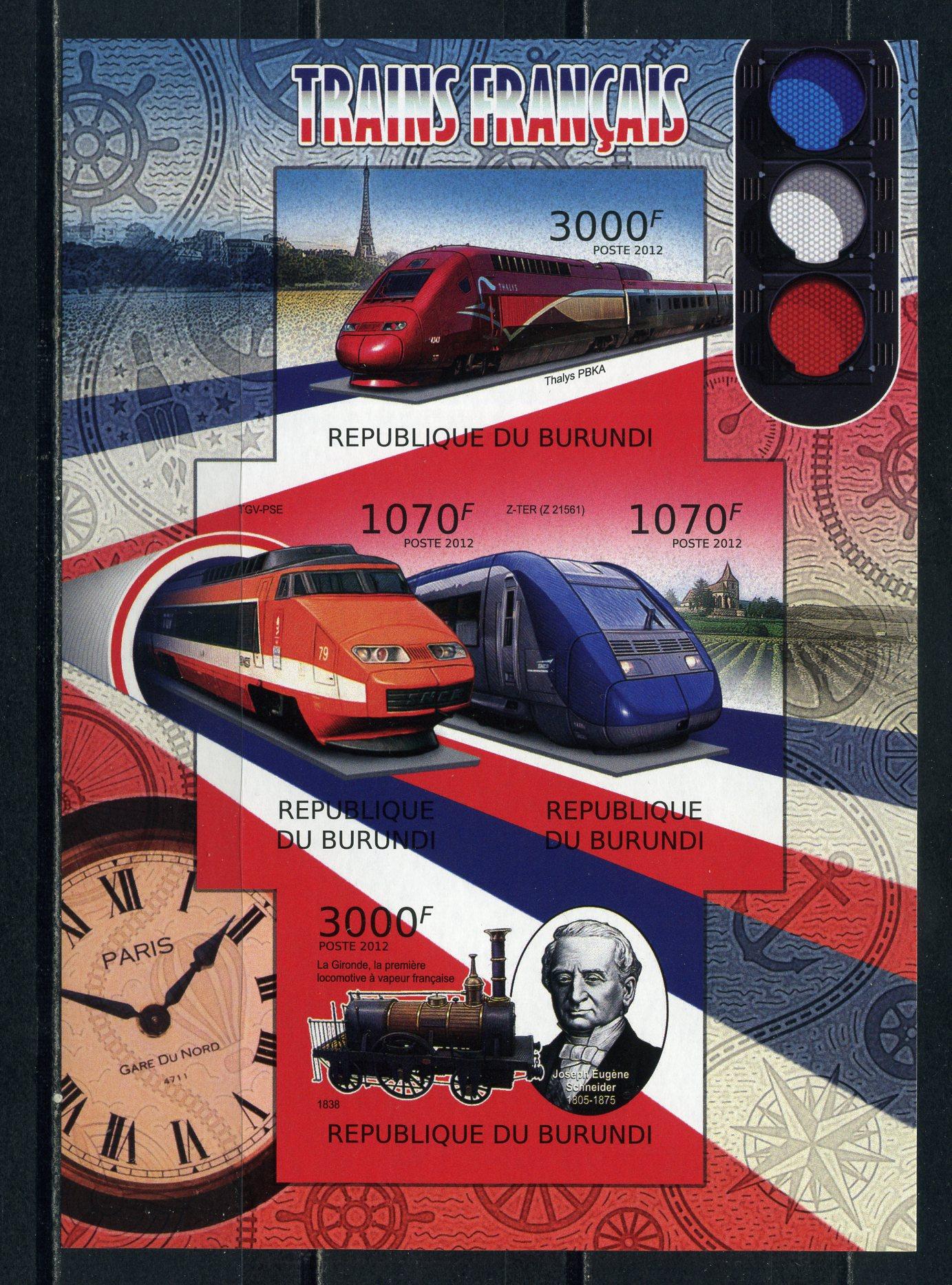 Почтовые марки. Бурунди. 2012г. Локомотивы Франции. МЛ. №2441В-2444В. Беззубц.
