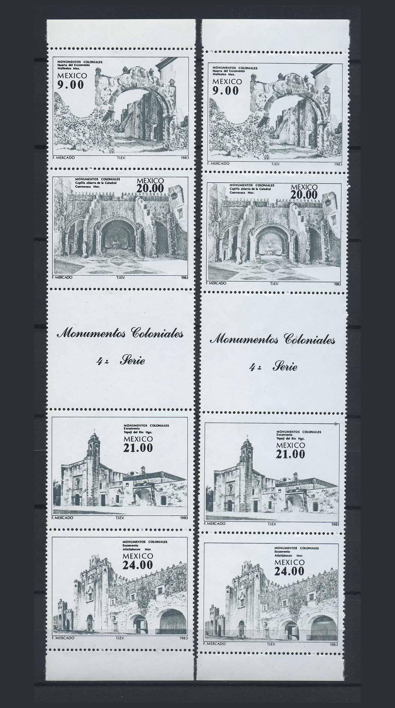 Почтовые марки. Мексика 1983 г. № 1885-1888. Архитектура. РАЗНОВИДНОСТЬ (2 серии - тёмная и светлая).