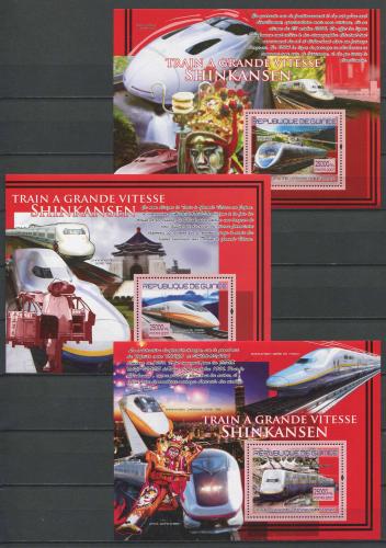Почтовые марки. Гвинея. 2007. Японские локомотивы. Блоки. № 1444-1446