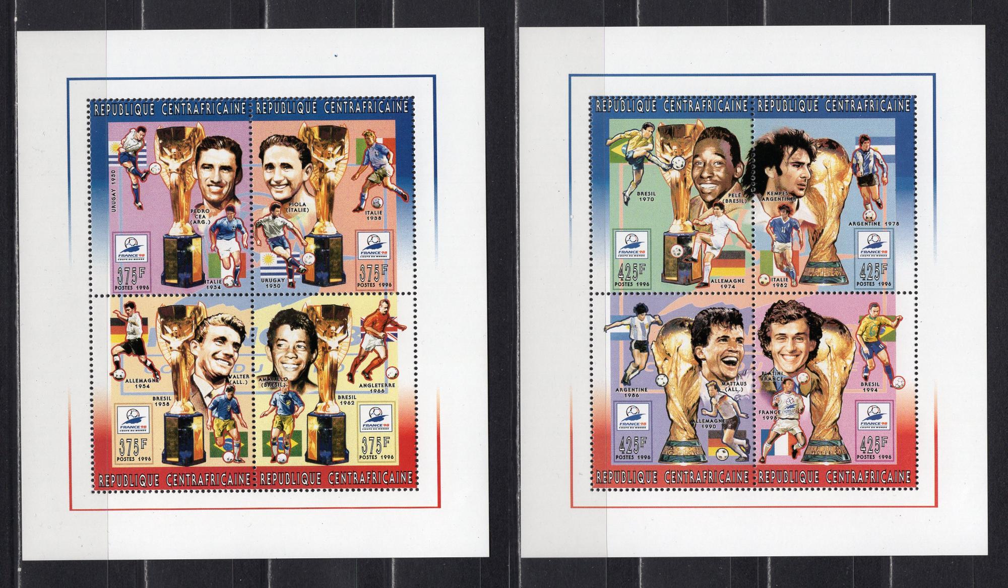 Почтовые марки. ЦАР. 1996г. Футбол. №1731-1738. 2 МЛ (Mi: 16.00 Евро)