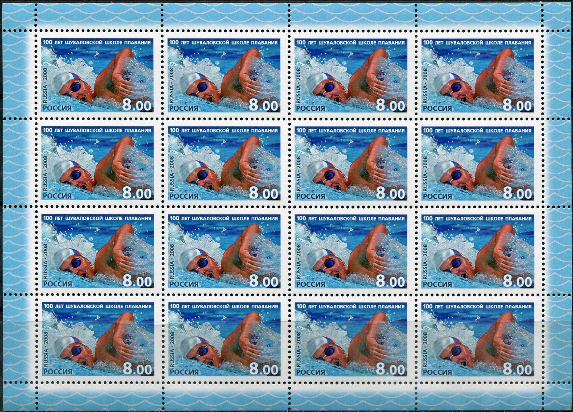 Почтовые марки. Россия. 2008. Школа плавания. ЛИСТ. № 1284