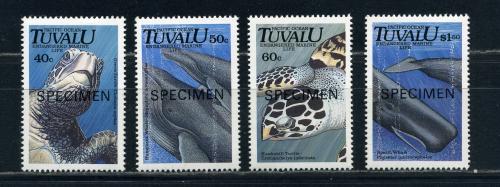 Почтовые марки. Тувалу. 1991г. Животные океана. Надпечатка. №591-594.