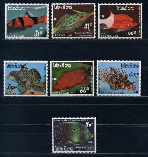 Почтовые марки. Лаос. 1987г. Рыбы. №1038-1044.